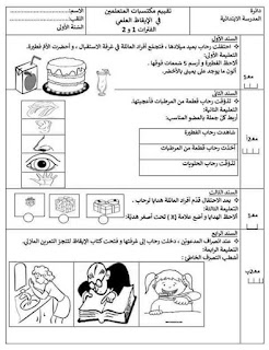 تقييمات الثلاثي الأول في الإيقاظ العلمي السنة الثالثة ابتدائي