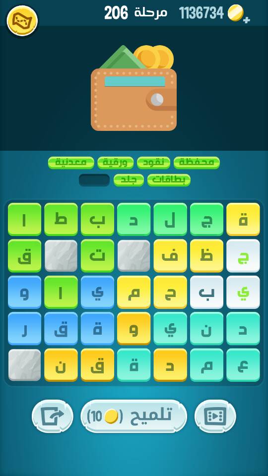 حل كلمات كراش مرحلة 206 كلمات مبعثرة زيتونة مجتمع الحلول