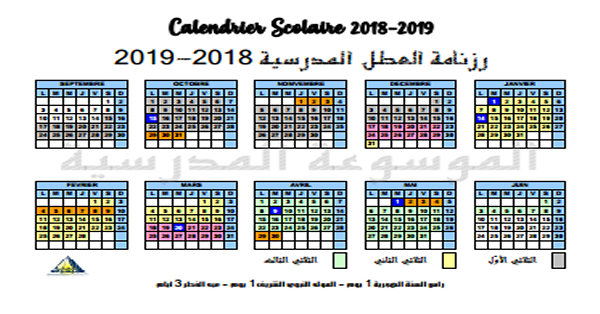 رزنامة العطل المدرسية 2019 2018 الموسوعة المدرسية