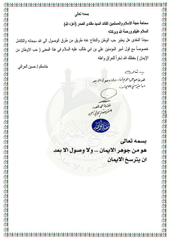 حب الوطن قيمة أخلاقية عليا على ضوء أحاديث أمير المؤمنين عليه