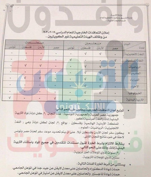 وظائف وزارة التربية والتعليم الكويتية معلمين ومعلمات 2019 الرابط